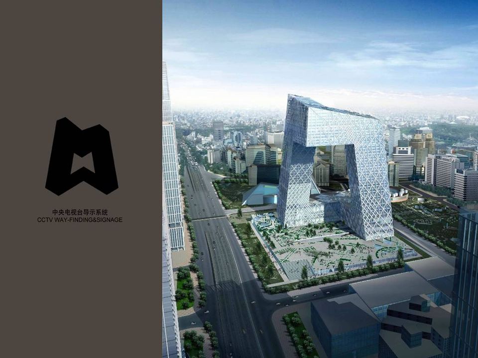 客户: CCTV行业: 央企/超级品牌服务: 为“CCTV”提供了标志设计、VI设计、导示系统设计、品牌活动传播、企业宣传片拍摄等服务!项目背景2006年初,由著名的建筑设计大师库哈斯设计的央视新大楼,已经在北京东三环破土动工,出现雏形,与此同时,中央电视台向全世界的各大知名设计公司发出了竞标邀请,希望通过这次新大楼的成立,实现完整的企业形象的建立,使其更加国际化。就这样,正邦有机会走到了这个媒体巨无霸的面前,并且成功的赢得了客户的青睐,在这次国际招标中取得了胜利。面临挑战中央电视台项目除了其复杂的行政及品牌架构的梳理和视觉架构的梳理以外,很重的一块在于复杂庞大的园区导示设计工程。同时,项目还需要对建筑图纸,装修材料有非常专业的认知。与国际级的建筑设计工作室,央视业主需要3方同时取得一致意见。这些都成为项目的难点。解决方案经过一年多和中央电视台及荷兰大都会建筑设计工作室配合,正邦深深体会到了央视任务的艰巨程度,是一项巨大的工程,同时,也赢得了更多的经验,在建筑工程方面,在应用材料方面。另外,我们针对不同人流的对导示的需求分析,以及不同地域人群对导示牌的高度的研究都给出了科学的解决方案。针对媒体大楼TVCC的设计方案也初步得到了客户的认可。