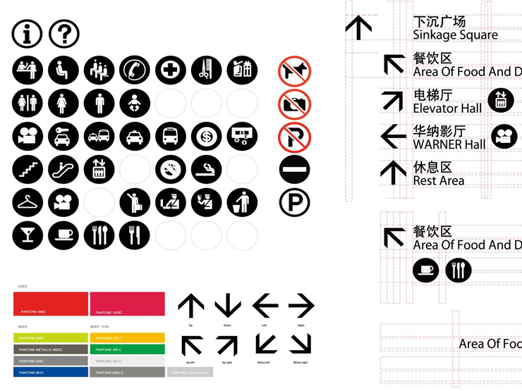 由于对象是商业地产,设计中除了品牌核心元素的展现和规范外,还要考虑到如何将品牌标志元素导入到万达国际广场的环境和导示设计中,使用户用一致的品牌体验。在这个项目上,正邦的环境导示部和VI研发部门的精诚合作,为项目的顺利进行打下了良好的基础。